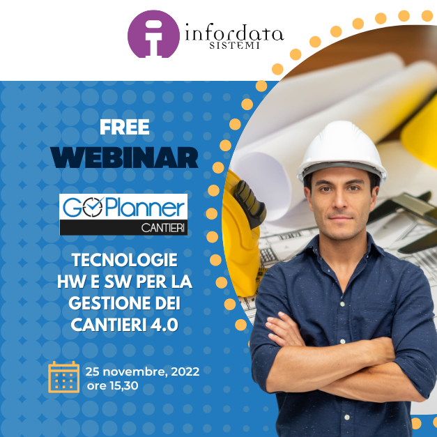 Partecipa gratuitamente al webinar di Infordata Sistemi per parlare di GoPlanner CANTIERI la soluzione progettata per ottimizzare la gestione delle risorse umane nei cantieri e aumentare il livello della sicurezza